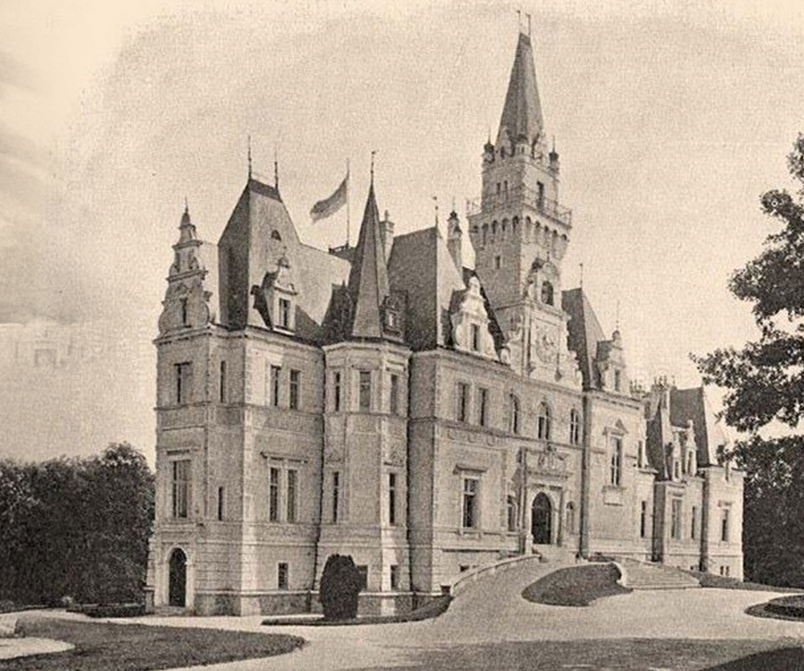 Projektu sa zhostil slávny viedenský architekt Franz von Neumann. Inšpiráciu hľadal priamo vo Francúzsku, v renesančných zámkoch na rieke Loire. Tento vplyv dodnes vidieť na romantickej fasáde, ktorú zdobí množstvo menších vežičiek, štítových vikierov a dominantná vyhliadková veža. Vstupný portál ako trvalý symbol spojenia dvoch rodov hrdo zdobia erby oboch manželov a letopočet datujúci stavbu.